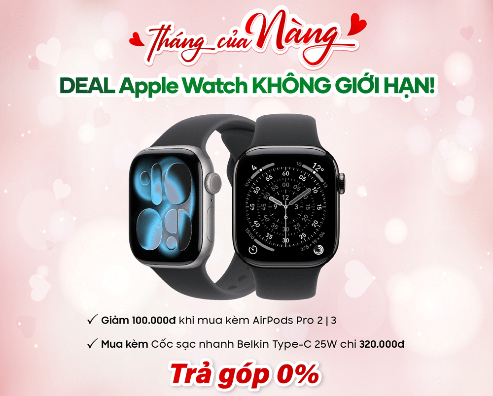 - Tặng dán PPF cao cấp khi mua Apple Watch mới - giữ trọn vẻ ngoài luôn sáng đẹp, thanh lịch theo từng chuyển động.