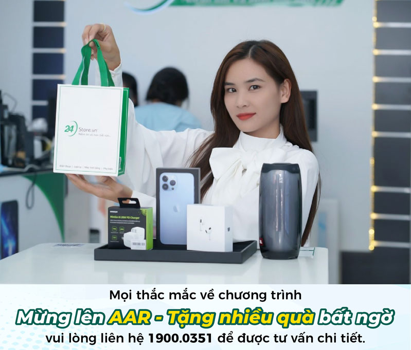 24hStore tự hào là Hệ thống uỷ quyền chính hãng Apple tại Việt Nam (Apple Authorized Reseller - AAR). Nhằm chia sẻ niềm vui, niềm tự hào cũng như tri ân và gửi lời cảm ơn sâu sắc đến Quý khách hàng đã tin tưởng và đồng hành cùng 24hStore suốt thời gian qua. Hệ thống xin được SALE toàn bộ sản phẩm và gửi tặng những sản phẩm chính hãng của Apple như iPhone 11 VN/A, sạc dự phòng MagSafe, AirPods 2, sạc MagSafe Duo cho khách hàng đến tham gia chương trình mua sắm trong tháng 7.