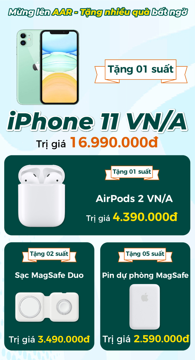 1. Tặng iPhone 11 VN/A và nhiều phần quà chính hãng Apple khi mua hàng tại hệ thống