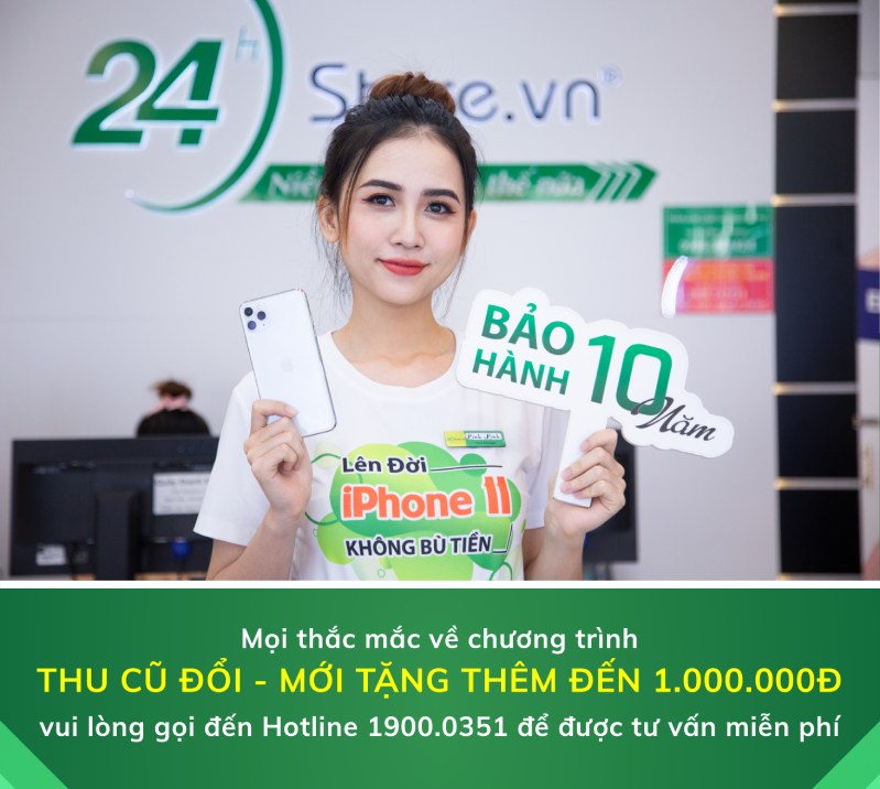 Nhận thu đổi cả những máy không hoạt động, không còn bảo hành, không phân biệt xuất xứ, không đầy đủ phụ kiện,… Đặc biệt TẶNG THÊM ĐẾN 1.000.000Đ khi Quý khách hàng lên đời điện thoại thông minh, iPad, Apple Watch, AirPods - duy nhất tại Hệ thống Cửa hàng 24hStore.