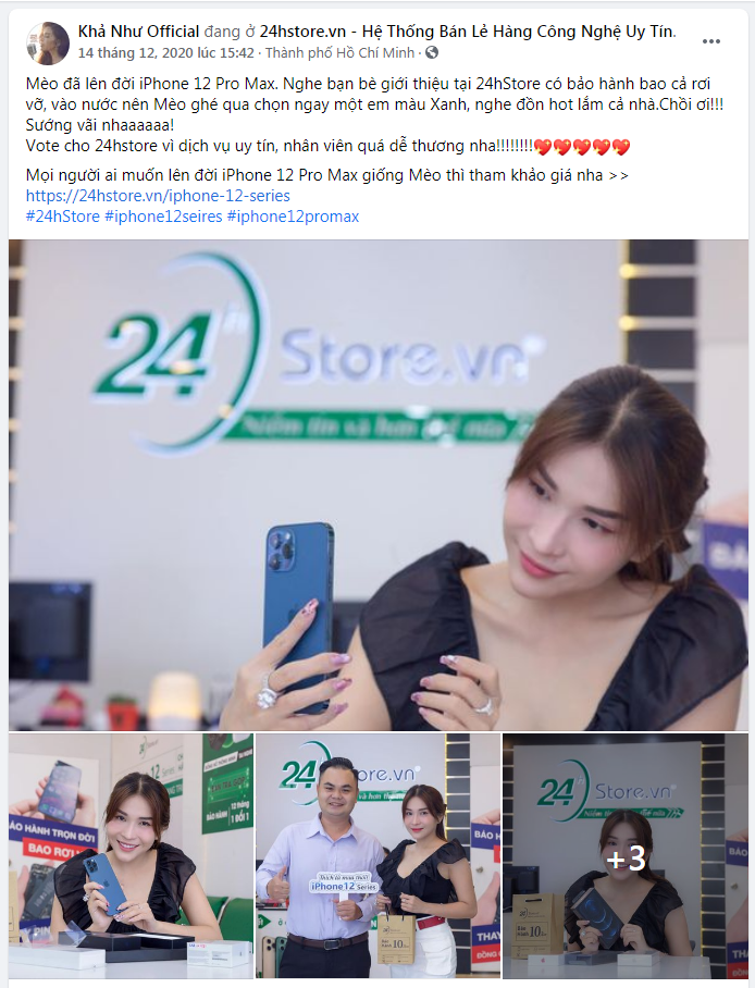 Khả Như lên đời iPhone 12 Pro Max tại 24hStore có bảo hành bao rơi vỡ, vào nước