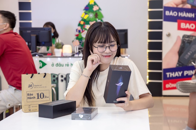 Là một Streamer về Game nên cô luôn chủ động cập nhật những sản phẩm công nghệ mới nhất để phục vụ cho công việc của mình. Tuy nhiên, thời điểm khi MisThy bước vào 24hStore, cô vẫn phân vân ba chiếc điện thoại: ASUS ROG Phone 3, Samsung Galaxy Note 20 Ultra và iPhone 12 Pro Max. Đây đều là ba chiếc điện thoại có hiệu năng cực khủng, có thể chơi game trong thời gian dài. Tuy nhiên, sau khi được nhân viên tư vấn về chính sách và giá của 3 chiếc máy trên thì cô đã quyết định rước ngay chiếc iPhone 12 Pro Max chính hãng về cho mình sau khi biết được thông tin thu cũ đổi cũ, lên đời iPhone 12 Series chính hãng, ưu đãi lên đến 6.500.000đ.