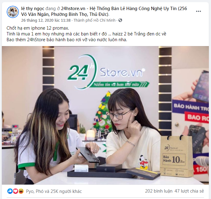 Quá hào hứng với hai chiếc điện thoại iPhone 12 Pro Max chính hãng mua tại 24hStore, MisThy đã khoe ngay với Fan hâm mộ trên trang cá nhân của mình.