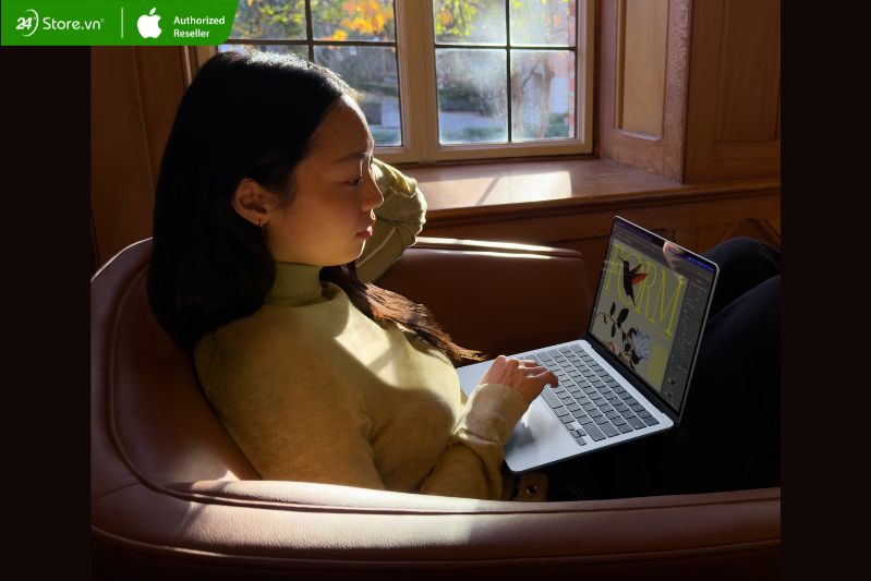 Ngoài ra, khả năng chỉnh sửa ảnh, dựng video và xử lý đồ họa cũng được cải thiện rõ rệt, mang đến hiệu quả làm việc cao. Việc khởi động ứng dụng và phản hồi thao tác cũng trở nên nhanh chóng hơn, giúp người dùng tiết kiệm thời gian. So với các thế hệ chip trước, M5 cải thiện đáng kể hiệu năng, đồng thời duy trì mức tiêu thụ điện năng rất thấp, giúp MacBook Air M5 hoạt động ổn định trong suốt thời gian dài.