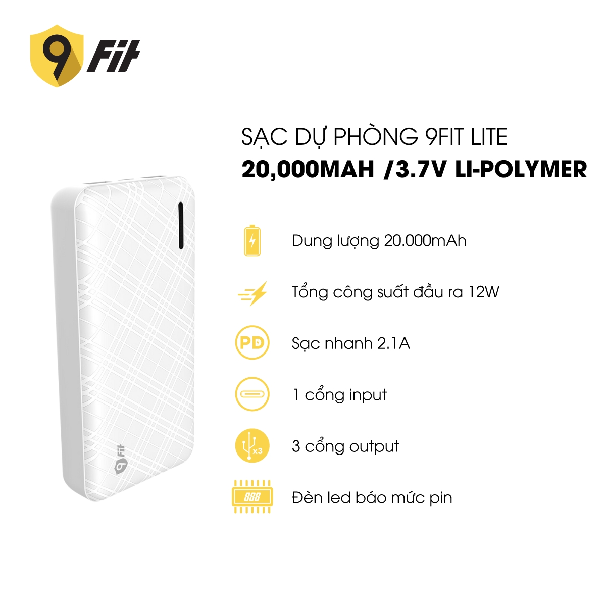Sạc dự phòng 9Fit Lite 20.000mAh /3.7V Li-Polymer - 9PL20K03
