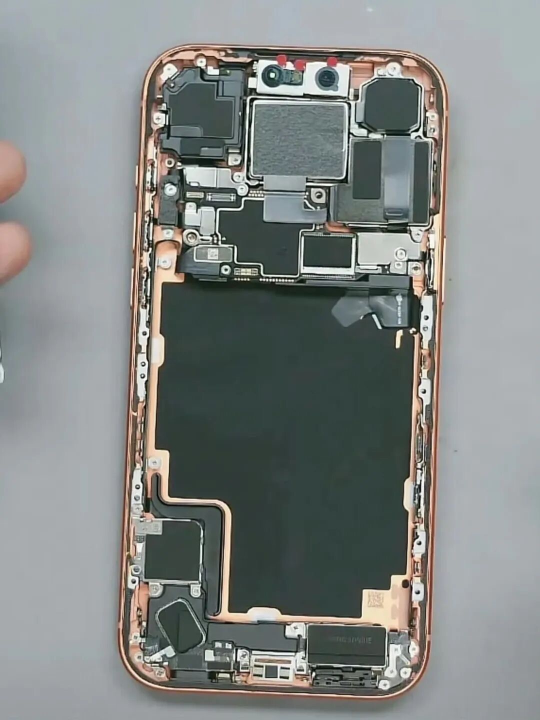 Sau một thời gian dài sử dụng, các linh kiện trên bo mạch của iPhone 17 Pro Max, đặc biệt là các mối hàn vi mô dưới IC, có thể bị lão hóa. Quá trình giãn nở và co lại do nhiệt độ lặp đi lặp lại có thể tạo ra các nứt ngầm hoặc làm giảm độ tiếp xúc giữa IC và bo mạch. Những hư hỏng này thường xuất hiện từ từ, khiến thiết bị hoạt động không ổn định, dễ gặp tình trạng chập chờn, sập nguồn đột ngột hoặc các lỗi khó đoán dù không có tác động bên ngoài rõ rệt.
